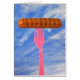 hot dog grillé sur fourche en plastique rose avec sur le ciel arrière - plan été
