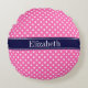 Hot Pink #2 Wt Polka Dots Navy Blue Name Monogram Rond Kussen