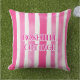 Hot Pink Stripes bewerkbare tekst Buitenkussen