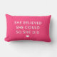 Moderne statement lumbar kussen die een perfect accent zullen zijn naar elke kamer. Deze motivatie kussen zijn uitgerust met moderne typografie met een hete roze achtergrond. Ze geloofde dat ze dat kon, dus deed ze dat. Andere kleuren zijn beschikbaar.