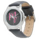 Hot Roze Zwart Modern Script Meisjes Monogram Naam Horloge