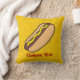 Cartoon illustratie van hotdog. Junk food outline iconen geel patroon achtergrond. Aangepaste tekst aan beide zijden.