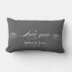Vertrouw je liefde met deze chique en romantische kussens met de datum die je tegenkwam in een manuscript van ivoor in stoffige donkerblauw. Pas dit persoonlijke ontwerp aan met uw eigen namen. Dat zou het perfecte geschenk zijn voor een gehuwd, verloofd, jarig, Valentijnsdag, bruiloften, nuptiale douches en nog veel meer.