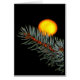 Een gloeiende gouden-oranje volle maan, gefotografeerd om op een evergroene tak te rusten, is het onderwerp van mijn wenskaart "Liefde jou naar de maan en rug".
