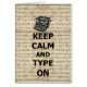 Modern neemt de populaire slogan 'rustig houden' over op een achtergrond