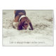 Un mignon chien en laine creusant dans le sable à la carte de voeux de la plage 1967.