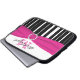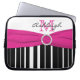 Cette housse d'ordinateur portable à rayures noires et blanches personnalisée avec un ruban FAUX rose et une broche en cristal comporte des champs de texte pour vous permettre de la personnaliser avec votre nom, vos initiales, le nom de votre entreprise ou d'autres textes. Si vous avez besoin d'aide pour la personnalisation, envoyez un email à niteowlstudio@gmail.com.