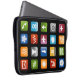 Housse d'ordinateur portable avec des icônes d'applications colorées. Idée de cadeau amusante et geek pour les nerds de la programmation informatique et les geeks d'Internet. Impression colorée avec des icônes de smartphone.