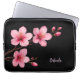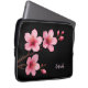 Housse Pour Ordinateur Portable Aquarelle rose cerisier noir Monogramme en fleurs