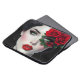 Tablet case with a beautiful black and white illustration of a pretty woman with a red rose and red lipstick.