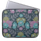 Cette pochette d'ordinateur portable présente des fleurs dans les tons violets, bleus et vert olive entourées de frondes de fougère violette muette et de feuilles sur un arrière - plan bleu foncé.