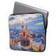 Manches d'ordinateur portable avec crépuscule Cracovie, ville médiévale pittoresque en Pologne.