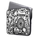 Un design abstrait surréaliste original et attrayant, dessiné à la main, composé de formes circulaires et carrés, reliées à diverses structures de tuyaux ou de tubes. Peut être un diagramme pour une sorte de machine étrange pour contrôler le temps, voyager dans le temps ou parler à des aliens d'autres mondes.