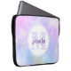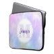 Portable avec un beau motif abstrait. Le violet, le rose et le blues mélangent, mélangent et coulent ensemble pour créer un design abstrait d'aquarelle élégant et magnifique. Un cercle blanc superposé avec votre nom et votre monogramme initial à l'intérieur.
