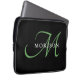 Housse Pour Ordinateur Portable Élégant Monogramme moderne noir vert Script
