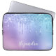 Ce joli design de pochette d'ordinateur portable présente une parties scintillant à goutte faux bleu et violet texture métallique et élégante police calligraphie.