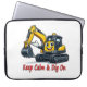 Mascotte d'excavatrice jaune souriante sur une housse pour ordinateur portable élégante. Citation « Gardez votre calme et continuez à creuser » parfaite pour les amateurs de construction, les ingénieurs et les fans de pelleteuse. Convient à la plupart des tailles d'ordinateurs portables, durable et amusant !