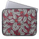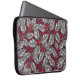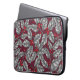 Housse Pour Ordinateur Portable Feuilles gris sur rouge foncé