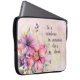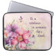 Fleurs, design abstrait et citation sur pochette d'ordinateur portable