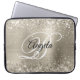 Parties scintillant platine argentée brillante Faux avec étincelles et fausse image art numérique en métal brossé sur la grande taille de manche d'ordinateur portable. On peut customiser le monogramme de calligraphie noir et blanc au centre. Pour ce style de police décorative, vous pouvez déplacer votre initiale au centre si nécessaire. Tous les éléments métalliques, brillants, brillants et brillants de ce design moderne girly sont créés avec des effets graphiques numériques qui s'impriment à plat comme une photo. Un beau cadeau de retour à l'école pour votre fille.