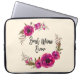 Une pochette d'ordinateur portable avec le texte : Best Mom Ever. Conçu avec de jolis pavots rose fuchsia et des sprigs décoratifs et des feuilles dans une couronne circulaire fleurie. Joli et élégant et créé à l'aquarelle.