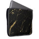 Un motif en marbre noir et faux or se sent luxueux et riche sur cette élégante pochette d'ordinateur portable. Art et design © 1201AM Design Studio