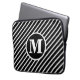 pochette d'ordinateur portable monogrammaire rayé noir et blanc