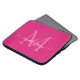 Monogramme moderne Hot Magenta Rose White Girly Chic Script Nom Manche de l'ordinateur