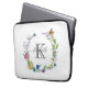 Housse Pour Ordinateur Portable Monogramme Script Calligraphie Papillons Fleurs