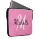 Coque d'ordinateur portable avec un arrière - plan rose et blanc personnalisé monogramme premier initiale et prénom.