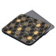 This contemporains objets a geometric gold color beehive pattern, bumblebees, and a black color background.