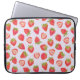 Mignonne manche d'ordinateur portable motif de fraise d'été. Montré avec arrière - plan rose. Autres couleurs disponibles. Oeuvre d'artistes propres illustrations.