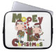Deux vaches dans des casquettes de bas, des cadeaux de Noël, des lumières de vacances, des sucres de canne, et texte rouges qui lit "Noël de Mooey" sur le T-shirts de vacances, les tasses, les cartes, les autocollants, les sacs fourre-tout, les horloges murales, les boîtes de souvenir, les ornements, les porte - clés, et d'autres habillement et cadeaux mignons de vacances de thème de vache.