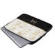 Housse Pour Ordinateur Portable Noir Or & Marbre Monogramme Élégant Luxe
