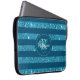 Un design simple, élégant, élégant, bleu océan et bleu turquoise parties scintillant rayé vous pouvez customiser avec votre monogramme et votre nom. Ajoutez un peu de parties scintillant et de bling à votre mode de vie quotidien pour protéger votre ordinateur portable avec cette pochette chic.