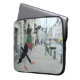 Cette manche pour ordinateur portable présente mon image de dessin animé d'un Pigeon dapper portant un casquette, sifflant une mélodie joyeuse et portant un parapluie, marchant le long d'une rue urbaine.
