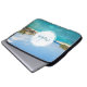 Une pochette pour ordinateur portable avec une belle photo représentant un complexe balnéaire tropical. Jolie plage de sable blanc et d'eau bleue avec des paillotes, ce qui lui donne une ambiance insulaire tranquille. Un cercle blanc superposé avec votre nom et votre monogramme initial à l'intérieur.