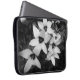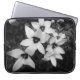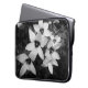 A black and white tablet sleeve featuring a delicate floral design in a soft monochrome style. The contrast between light petals and darker background creates a calm, elegant look that complements modern and minimalist aesthetics. Made from neoprene, this sleeve provides lightweight protection against everyday bumps and scratches while keeping your device stylish and secure. The design is printed on the front side, while the back remains plain. A perfect choice for those who appreciate clean design, nature-inspired details and functional accessories.