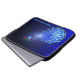 Une image fractale légèrement modifiée, bleue, qui semble être un cylindre creux ouvert au vide de l'espace à une extrémité où l'on voit une étoile flamboyante. Une sphère, portant la même image fractale, apparaît au premier plan comme si elle se déplaçait à travers le cylindre. Ajoutez votre propre texte.