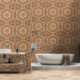 Dit behang imiteerde]is een prachtig rozet patroon gesneden in het hout. Perfect om te zijn en chique naar een van de wanden van een kamer of voor een volledige kamer te brengen.