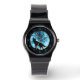 Howling Wolf Winter besneeuwde blauwe rook Abstracte polshorloge. Koele mannen Accessoires met Abstracte geometrische winter besneeuwde blauw-witte rook en zwarte wolf silhouet. Monogram Personaliseer met uw aangepaste initiaal en naam.