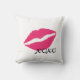 Vette, heldere, roze lippen, accentueren deze XOXO's kussen op een witte achtergrond. Dit kussen kan gemakkelijk met een naam of een monogram worden aangepast indien voorkeur, en maakt een zoet geschenk voor Valentijnsdag of een verjaardag.