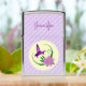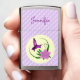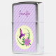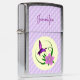 Deze paarse kolibrie vliegt in de buurt van een mooie roze lippenbloem.