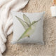 Een kleurpotloodtekening van een vrouw Ruby Throat Hummingbird siert dit kussen!