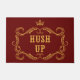 De grappige voordeurmat voor landgenoten kenmerkt gouden "zwijg omhoog"tekst en fancy lijst op donkerrode achtergrond. Een perfecte manier om bezoekers eraan te herinneren stil te zijn voor een nieuwe baby, dagslapers etc.