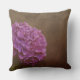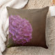 Dit kussen heeft zowel aan de voor- als aan de achterzijde een artistiek ontwerp met een paarse/roze Hydrangea bloem op een gestructureerde artistieke bronzen achtergrond. Het is mogelijk om tekst toe te voegen zoals een naam of monogram lettertypen.