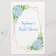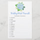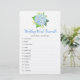 Dit vrijgezellenfeest spel is een trouwwoordscramble met 12 woorden om te ontrollen. Het is voorzien van een waterverf blauwe hydrangea floral design met faux Gold folie geometrisch lijst op de achterkant. Pas de tekst aan de achterkant aan met de naam van de bruid.