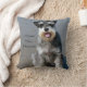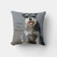 Schattige miniatuur schnauzer op het natte zandige strand. De tekst luidt "I Love Mini Schnauzers" op de voor- en achterkant van de kussen.