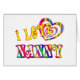 Deel je liefde voor Nanny met dit kleurrijke design met harten en de woorden - Ik hou van Nanny.