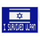 Ben je een oleh/olah? Blauwe Engelse tekst die "I OVERVIVED ULPAN"in een faux doopvont van de Hebreeuws lezen. De vlag van Israël staat boven de tekst. Misschien was het allemaal Grieks voor je in het begin, maar nu je het door de pan hebt gehaald, spreek je als een tzabar (sabra). Als je aliyah hebt gemaakt weet je wat ik bedoel. Voor degenen die niet in de kenniszaal zitten, is het Hebreeuwse taalonderwijs voor immigranten naar Israël.